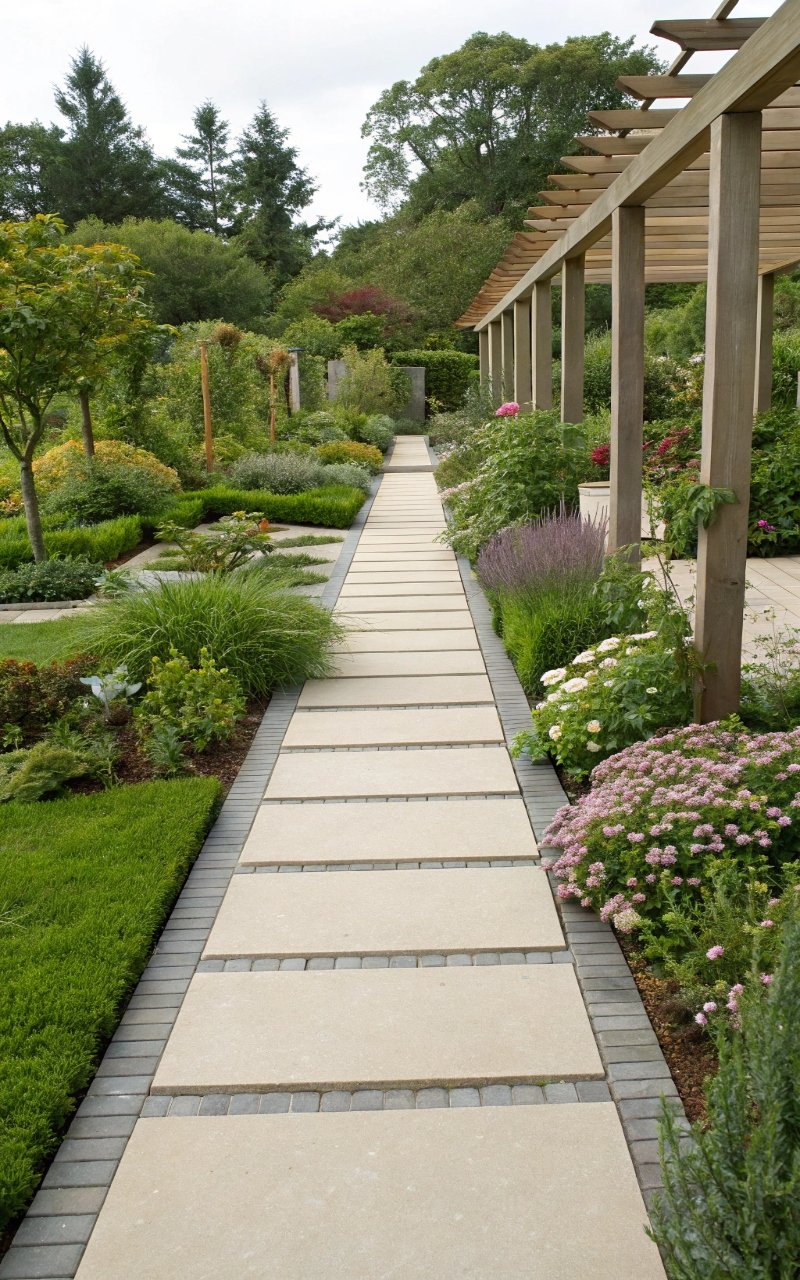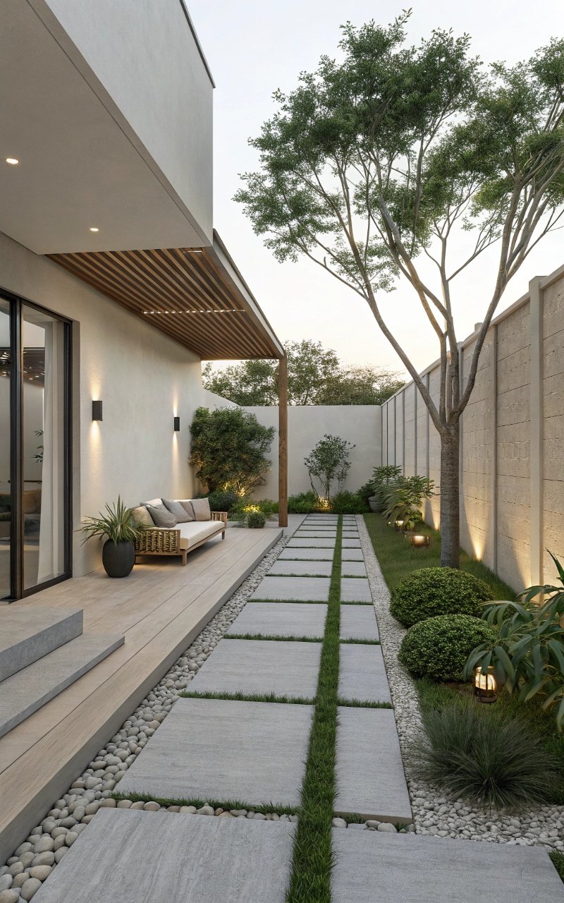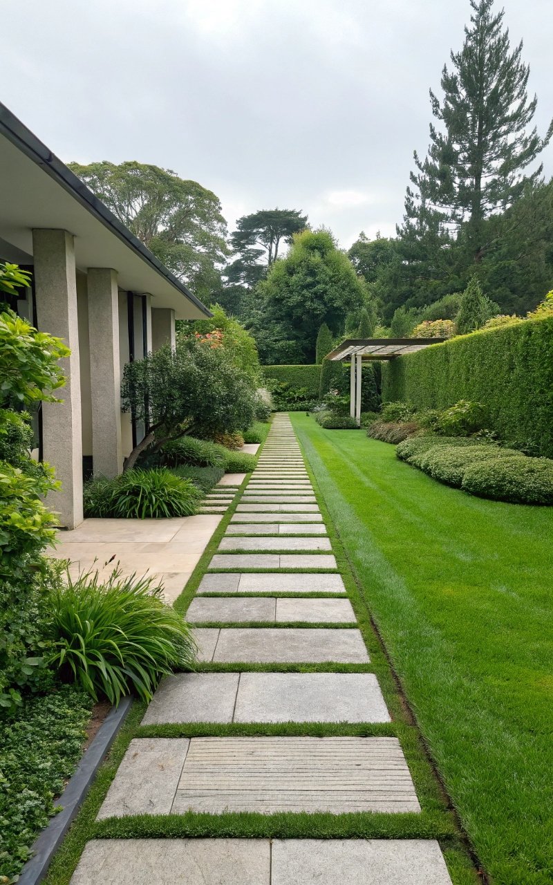 Straight paths feel clean and modern. I love how they guide movement clearly. The yard feels structured. Nothing feels confusing. Doesn’t clarity improve design? It’s simple and effective.
