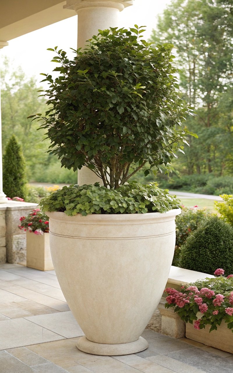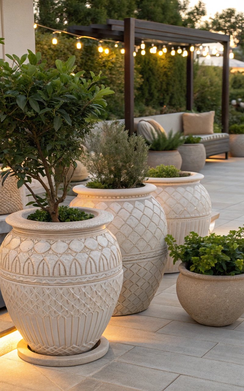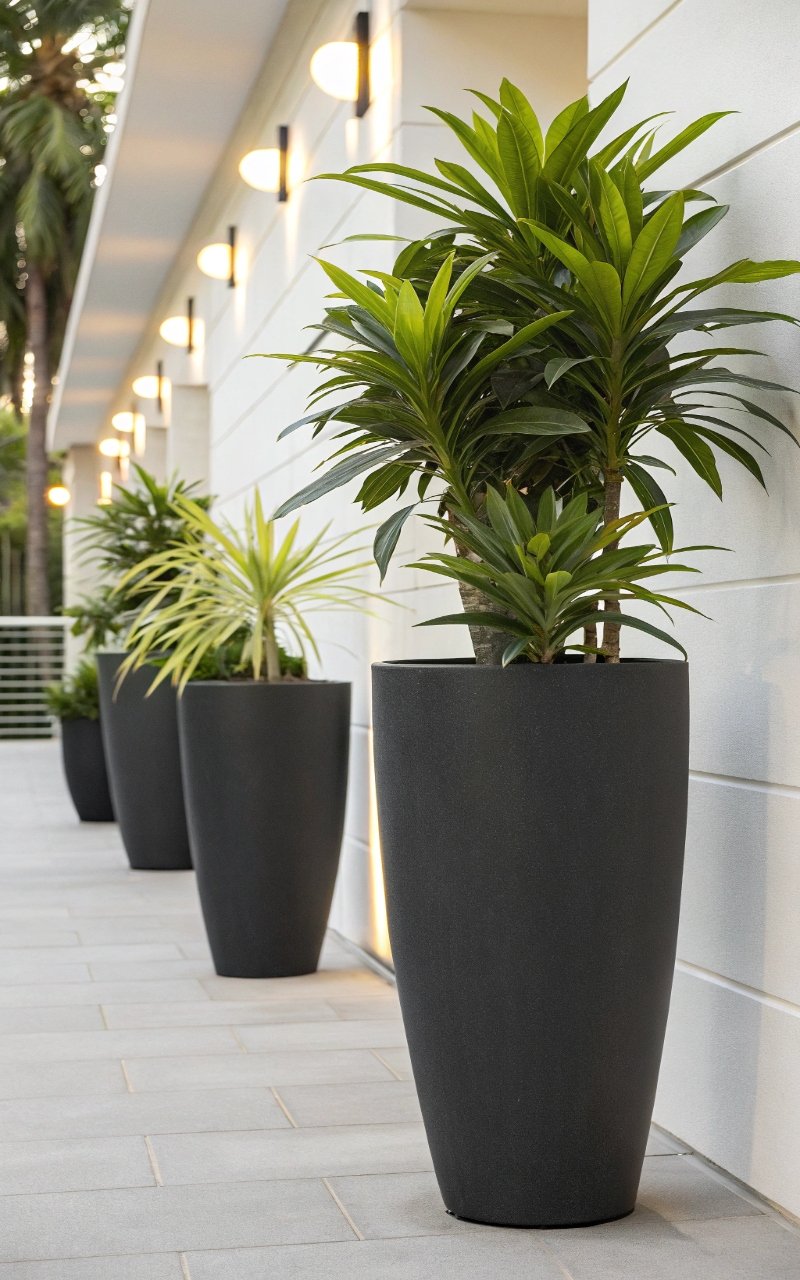 Pro Tip: Use lightweight concrete-style pots for easier movement.