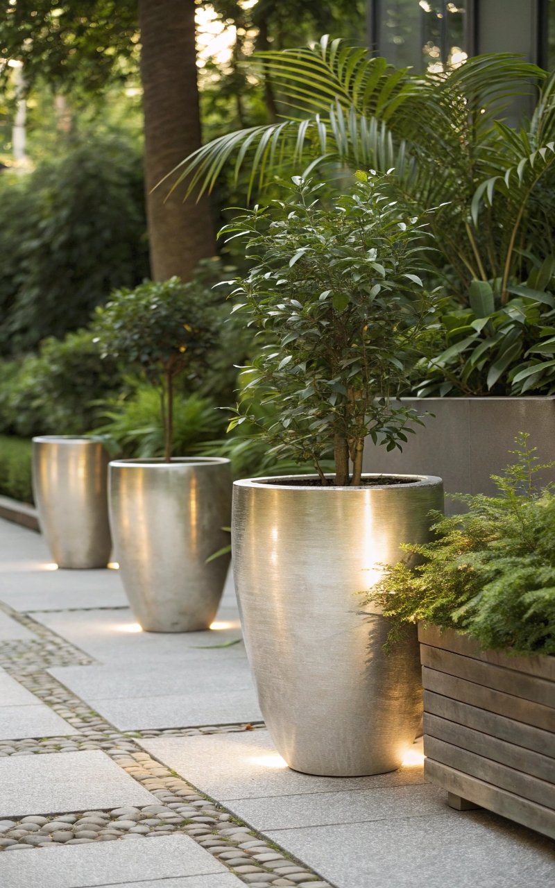 Adding metallic pots brought a touch of shine that instantly caught my eye. The reflective surfaces and subtle shimmer create contrast and brightness. I love how they stand out without being too flashy. It’s a great way to add a modern twist. Have you ever noticed how a bit of shine draws attention? This one adds that highlight.