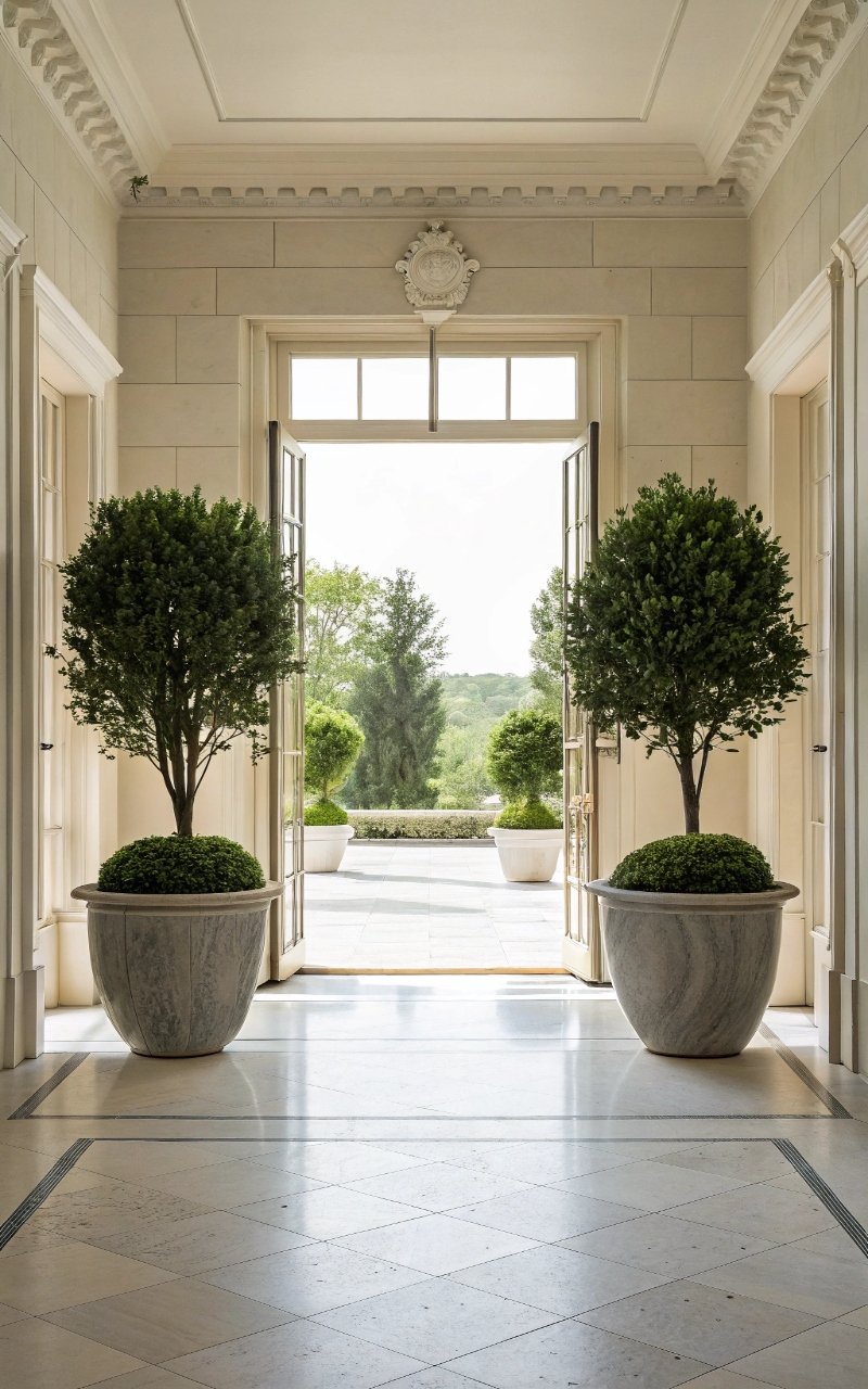 Placing matching pots on either side of an entry created a clean, balanced look. The mirrored setup and structured layout make the space feel polished. I love how it frames the area without adding clutter. It’s simple but very effective. Doesn’t symmetry just feel satisfying? This one adds instant order.