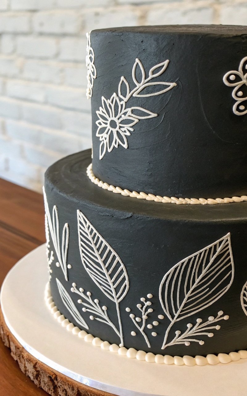 A chalkboard-style cake adds a creative and unique look. The dark base and handwritten-style text make it feel modern and artistic. I love how it stands out from traditional designs. It’s simple but bold. Doesn’t contrast make things more interesting? This one definitely does.