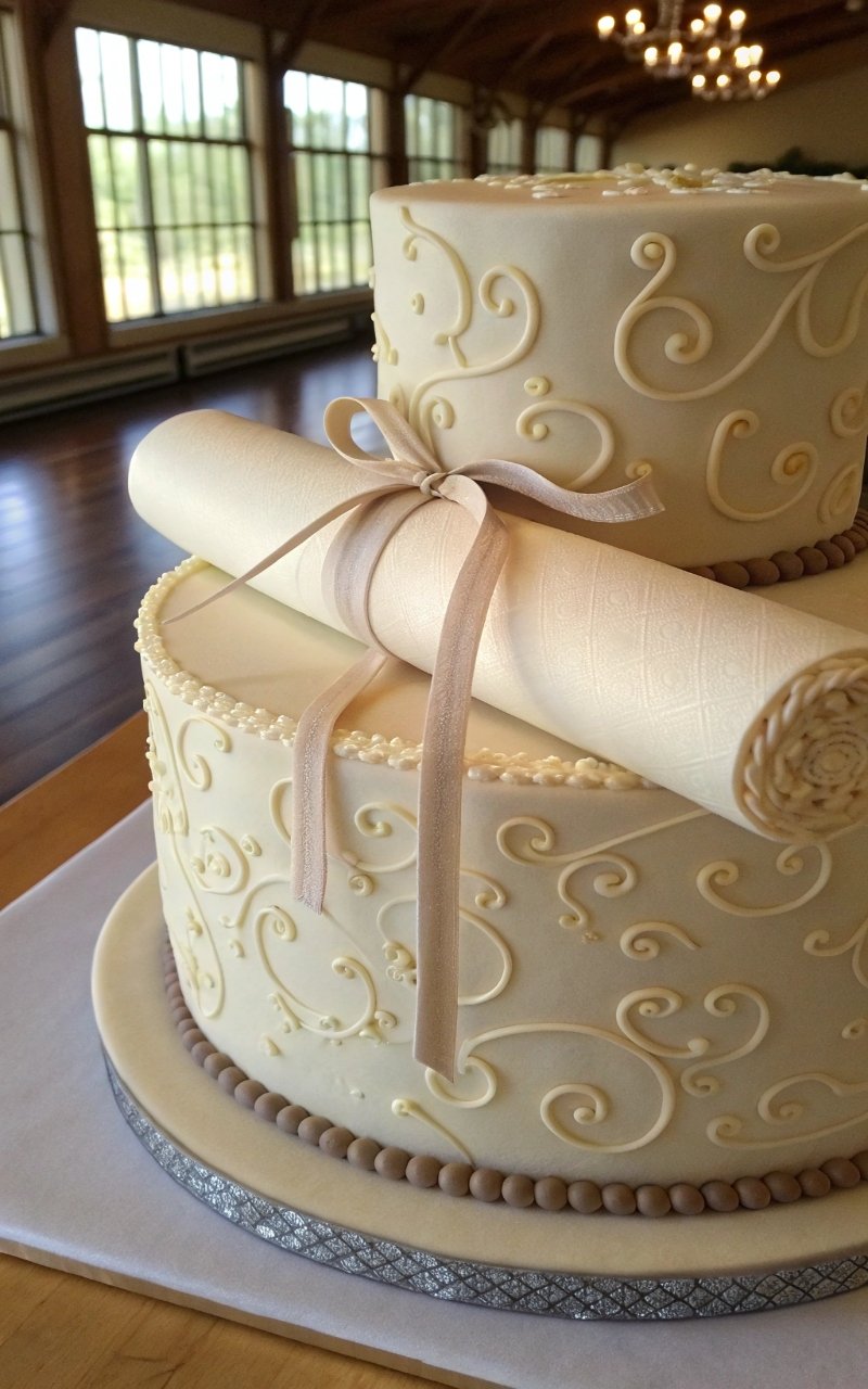 Pro Tip: Use fondant or fruit strips to shape the scroll.