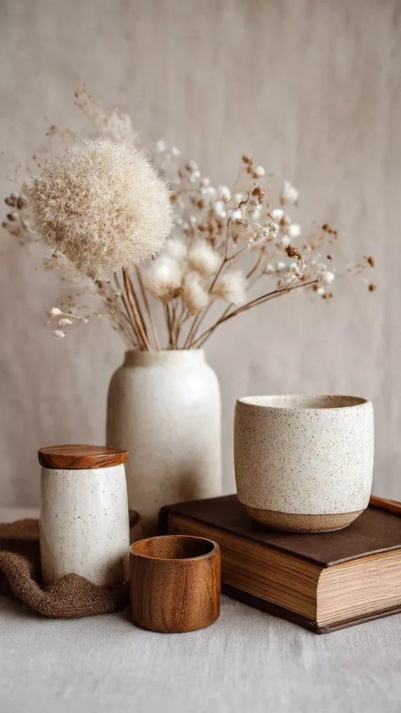 Wood, ceramic, linen, and stone add earthy calm to minimalist spaces. They prevent the look from feeling cold or clinical. I love how natural textures anchor the room emotionally. Doesn’t nature always bring balance?