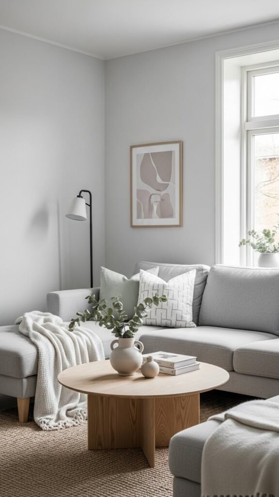 A light neutral palette of whites, creams, and soft grays creates the foundation of a Scandinavian living room. I love how these shades reflect natural light and make the space feel open and calm. They also allow textures and shapes to stand out beautifully. The room feels peaceful and balanced. Doesn’t a light palette make everything feel fresher? It’s the heart of Scandinavian style.