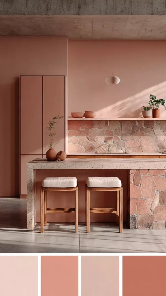 Using multiple pink shades adds richness and prevents the kitchen from feeling flat. Blush, rose, and muted coral can coexist beautifully when balanced with neutrals. I love how layered color feels intentional and confident. Why settle for one note when you can have harmony? It’s bold but still refined.