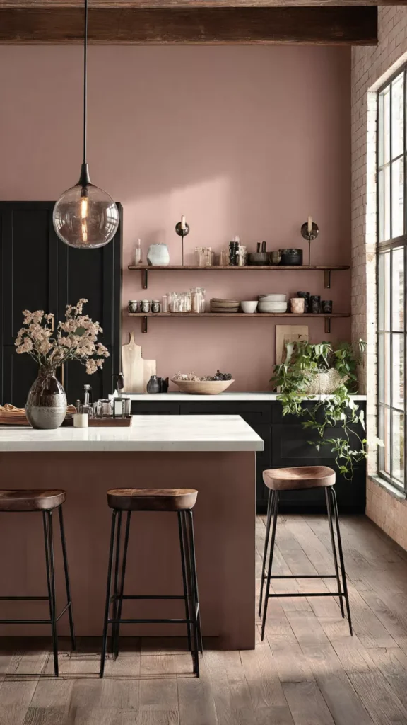 Painting the walls dusty rose creates a soft backdrop that works beautifully with wood, white, or black cabinetry. The color wraps the room in warmth without overpowering the design. I love how it makes evening cooking feel calmer and slower. Isn’t it wild how wall color changes your mood? Dusty rose feels lived-in and modern at the same time.