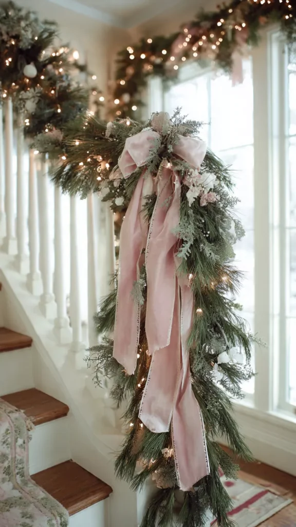 A simple pink ribbon woven into wreaths or greenery garlands transforms classic décor into something soft and sweet. The color complements fresh greenery beautifully, adding a gentle pop without disrupting the natural look. I adore the effect of long trailing ribbons on banisters or windows—they feel whimsical, delicate, and quietly festive. Don’t ribbons make everything feel more intentional and charming? Pro Tip: Choose satin or velvet ribbon for the richest finish.