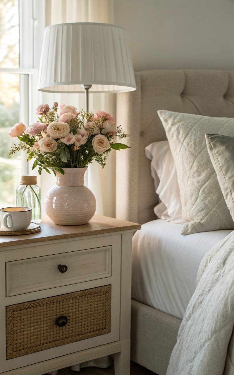 Flowers in the bedroom feel calming. I love placing them on nightstands. The space feels peaceful. Nothing feels plain. Doesn’t softness help relaxation? It’s a gentle touch.