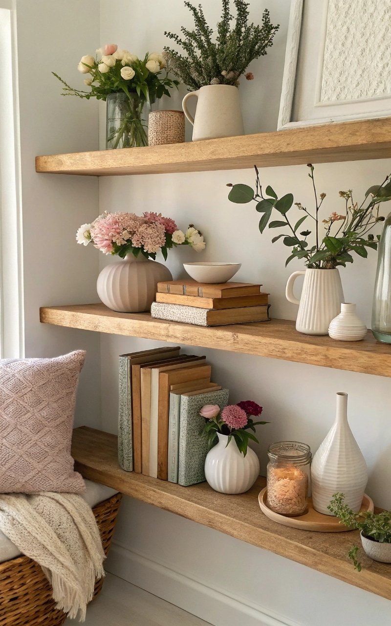6. Floral Shelf Styling