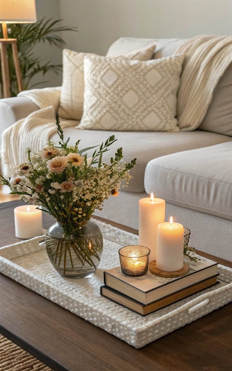 A tray with flowers looks curated. I love combining blooms with candles. The space feels intentional. Nothing feels random. Doesn’t grouping create style? It’s an easy trick.