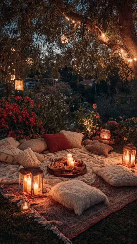 Lay down a soft blanket, pillows, and a tray of treats for a cozy floor-level date. It’s relaxed, fun, and wonderfully nostalgic. I always think picnics bring out the sweetest conversations. Doesn’t it feel delightfully whimsical?