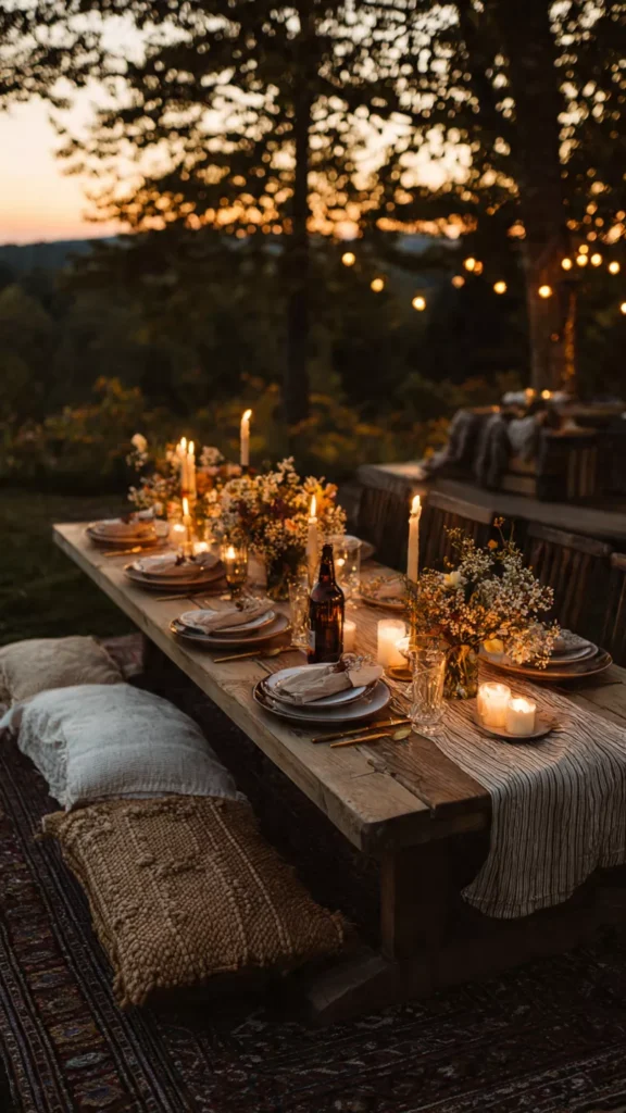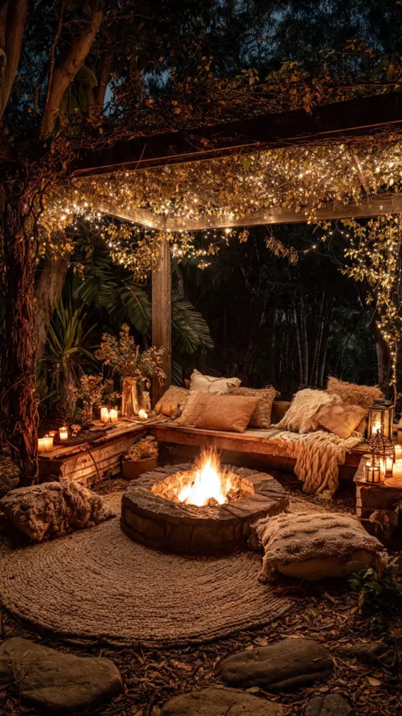 A small fire pit creates warmth, crackle, and atmosphere all at once. Sitting together by the fire feels intimate and grounding. I love those quiet moments staring into the flames. Doesn’t firelight feel timelessly romantic?