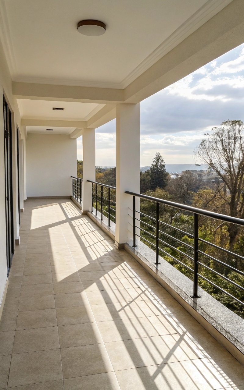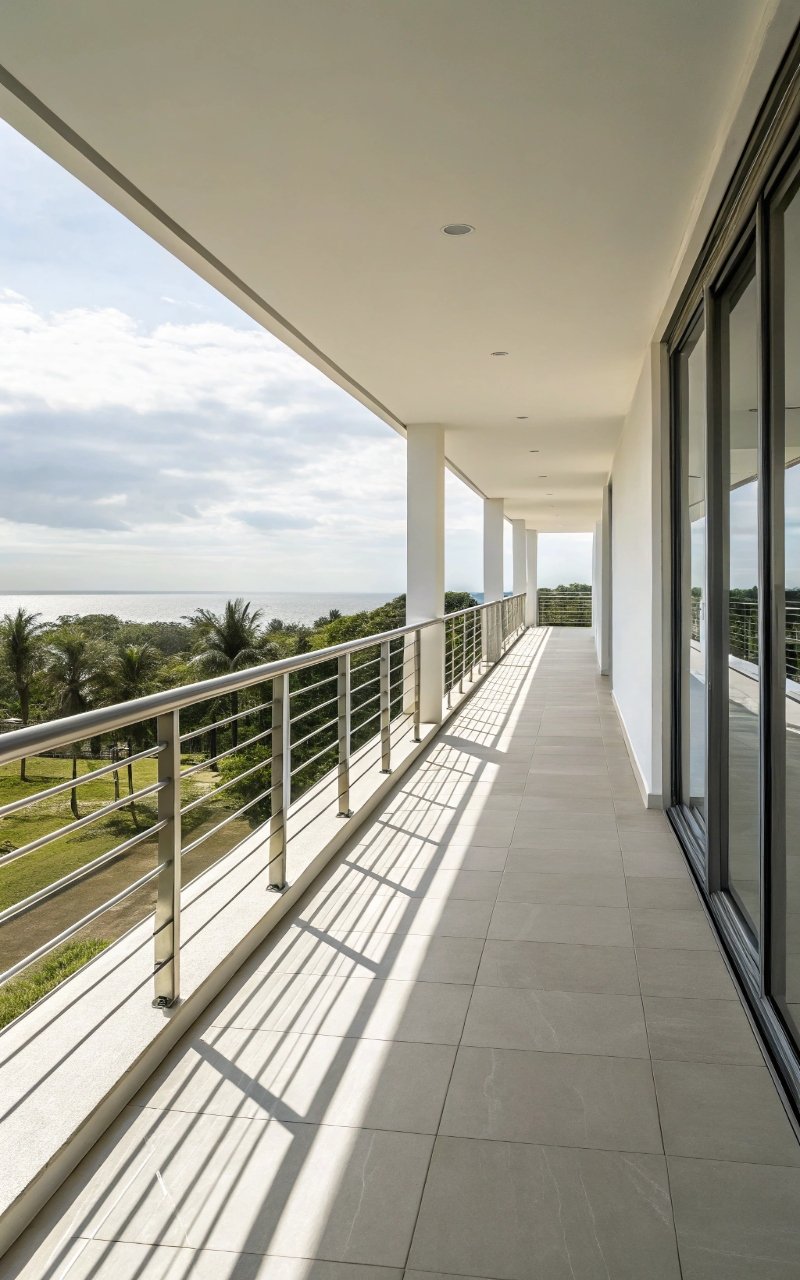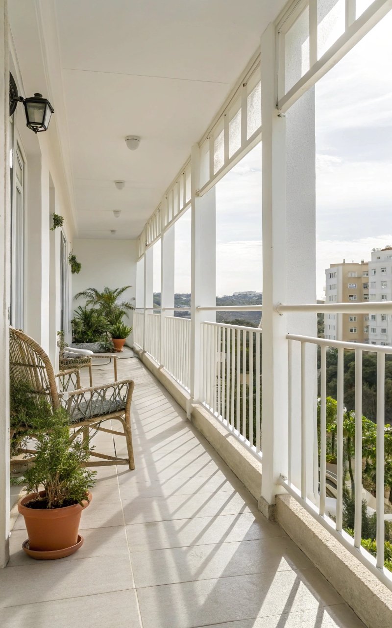White railings brighten the balcony and reflect light, making the space feel more open. The color blends with surroundings, reducing visual weight. It’s clean and simple without feeling plain. The brightness enhances the overall atmosphere. It’s subtle but effective.