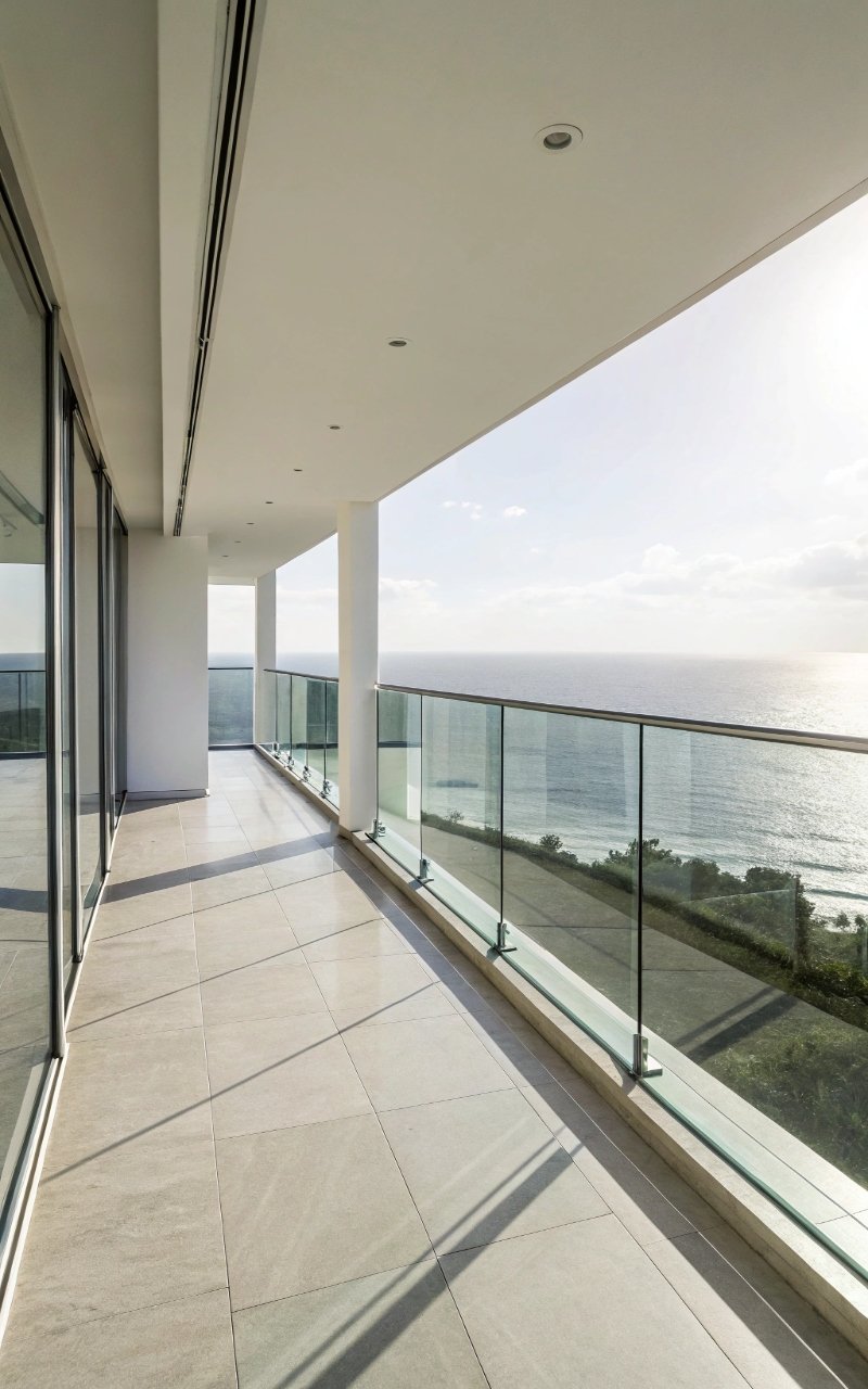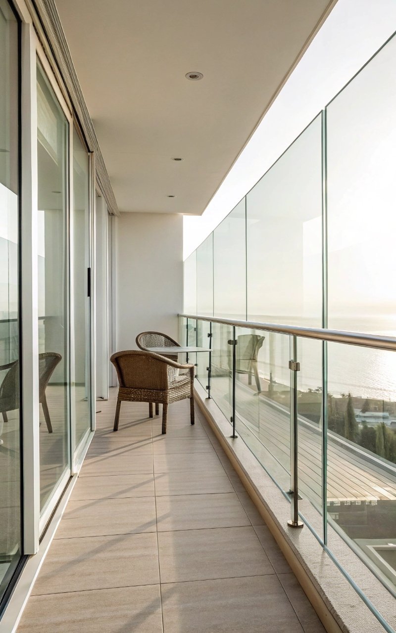Frameless glass creates a seamless edge that almost disappears, making the balcony feel larger than it is. The uninterrupted view enhances openness. It’s sleek and modern. The simplicity stands out. It’s minimal in the best way.