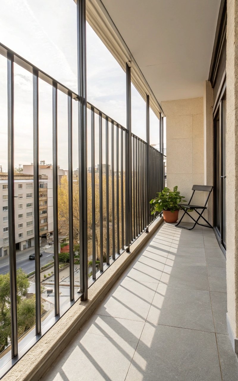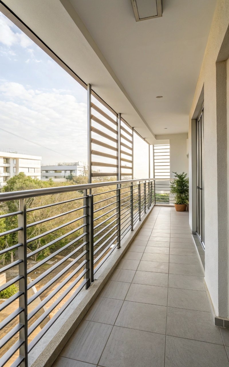 I switched to slim vertical bars, and the difference in openness was immediate—the lines are clean and allow your eye to move upward, making the space feel taller. The spacing lets light pass through easily, which helps brighten the balcony. It’s simple but very effective. The design feels structured without being heavy. It’s a classic choice that still works beautifully. Pro Tip: Keep spacing consistent for a clean finish.