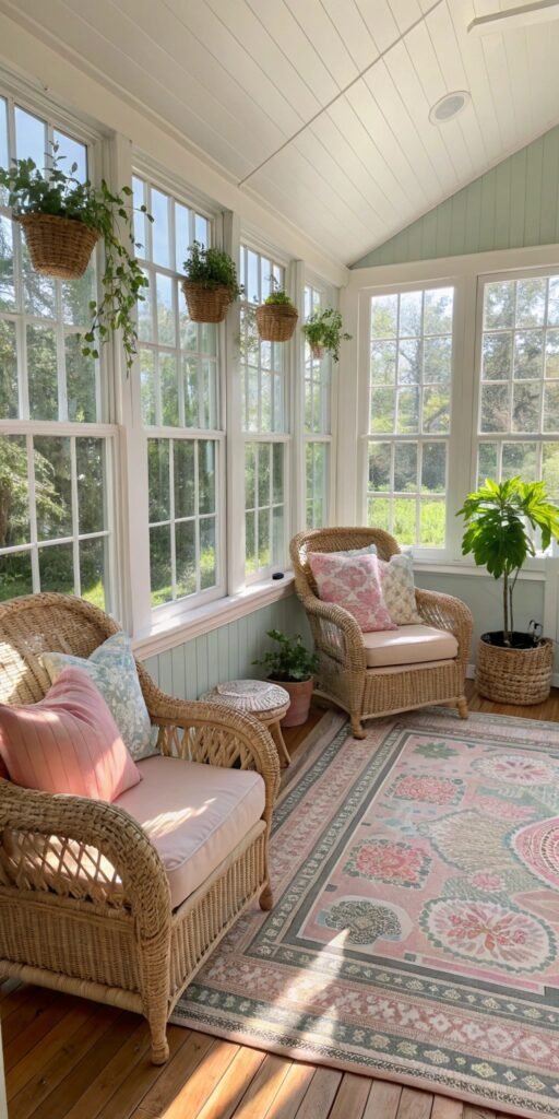 Wicker furniture adds timeless charm. I love how the woven texture catches sunlight. The room feels relaxed and inviting. Nothing feels overly modern. Doesn’t vintage style feel comforting? It’s perfect for casual sunlit spaces.