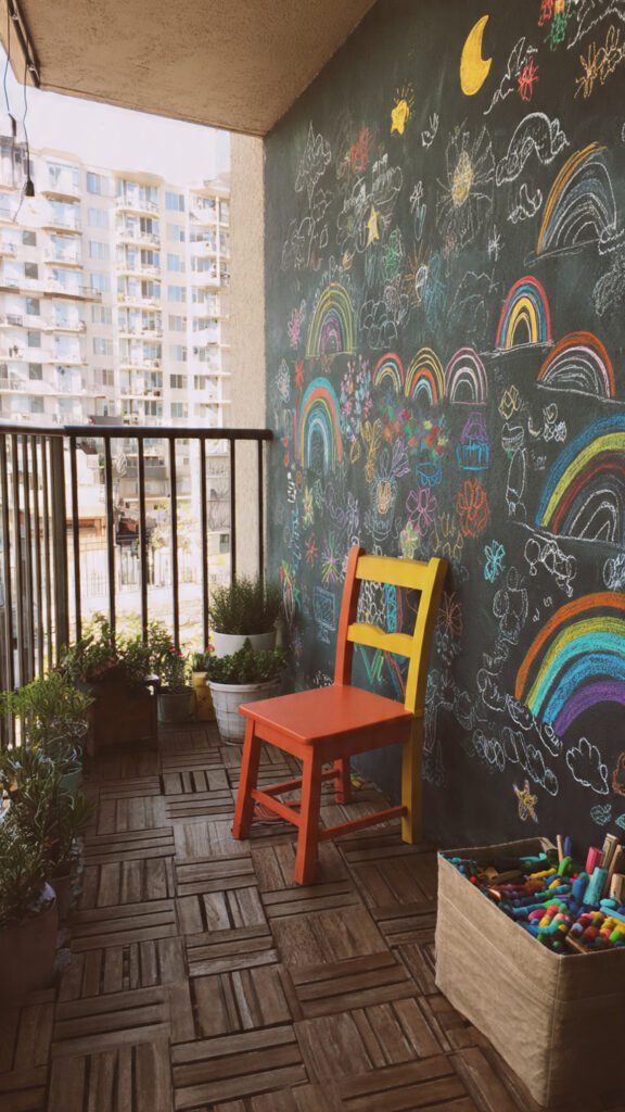 Chalk art is low-cost and endlessly reusable. I love how a small chalkboard wall turns the balcony into a creative zone. Girls can draw freely. The space feels alive. Doesn’t creativity boost confidence? This idea keeps them engaged.