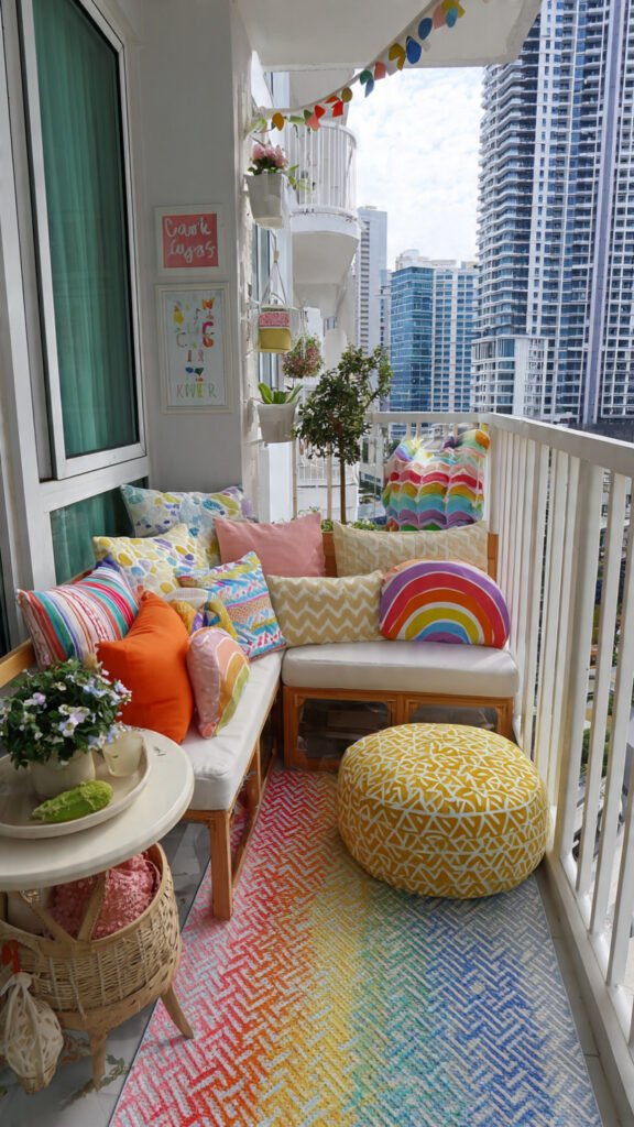 I still remember trying to make a balcony feel fun and colorful on a tight budget and thinking it just wasn’t possible. Everything cute seemed expensive, and everything affordable felt boring. Then I started mixing simple rainbow colors using things I already had—pillows, paper, fabric scraps—and suddenly the balcony felt joyful and full of personality. It didn’t need much money, just a little creativity.