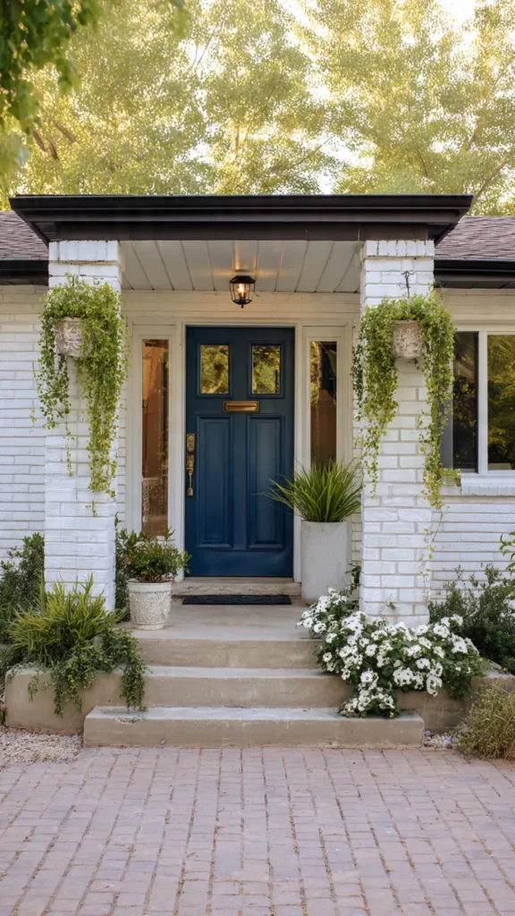 A colorful door makes the biggest impact with the smallest effort. Think navy, sage green, red, or even sunny yellow. I love how a painted door instantly modernizes the whole exterior. Doesn’t it feel like the house has a personality now?