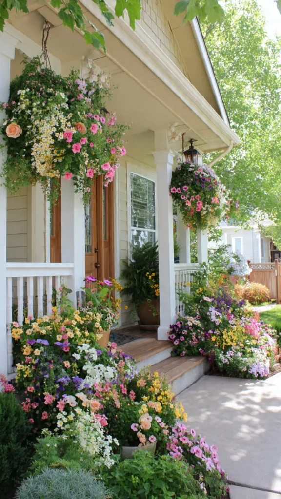 Hanging baskets bring color up to eye level, making the yard feel lush and lively. I adore the gentle waterfall of flowers as they trail down. Doesn’t it add romantic charm instantly?