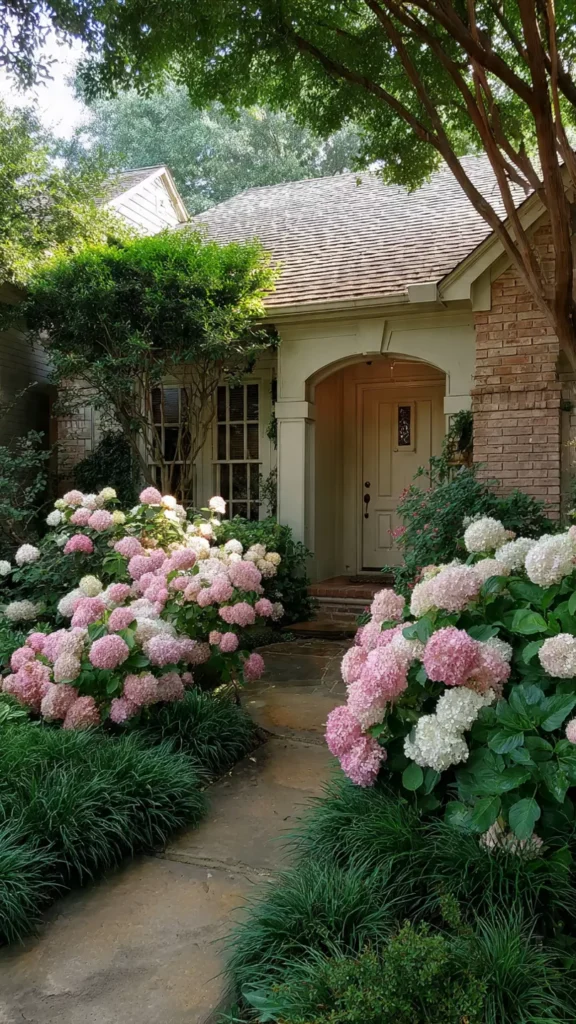 Hydrangeas, azaleas, and roses add not just greenery—but waves of stunning blooms. They make the front yard feel lush and timeless. I always swoon a little at a blooming shrub. Doesn’t it feel classic and welcoming?