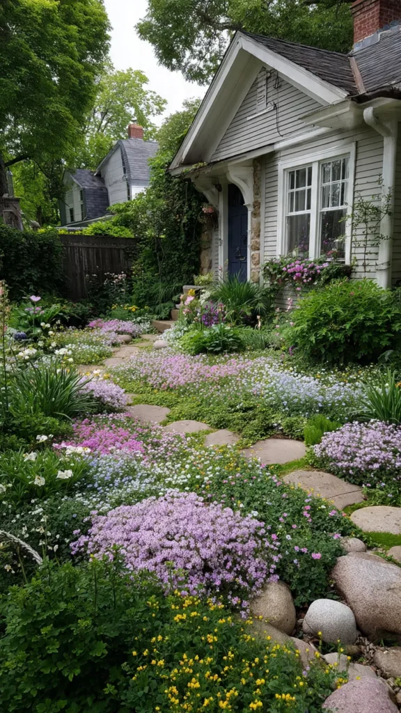 Colorful groundcovers like creeping thyme or ice plant create a soft, living carpet. They fill spaces beautifully while adding gentle pops of color. I love how they soften everything. Doesn’t it feel peaceful and cheerful?