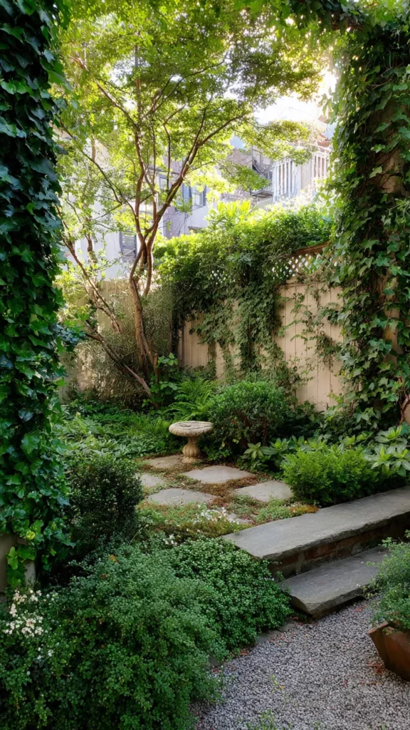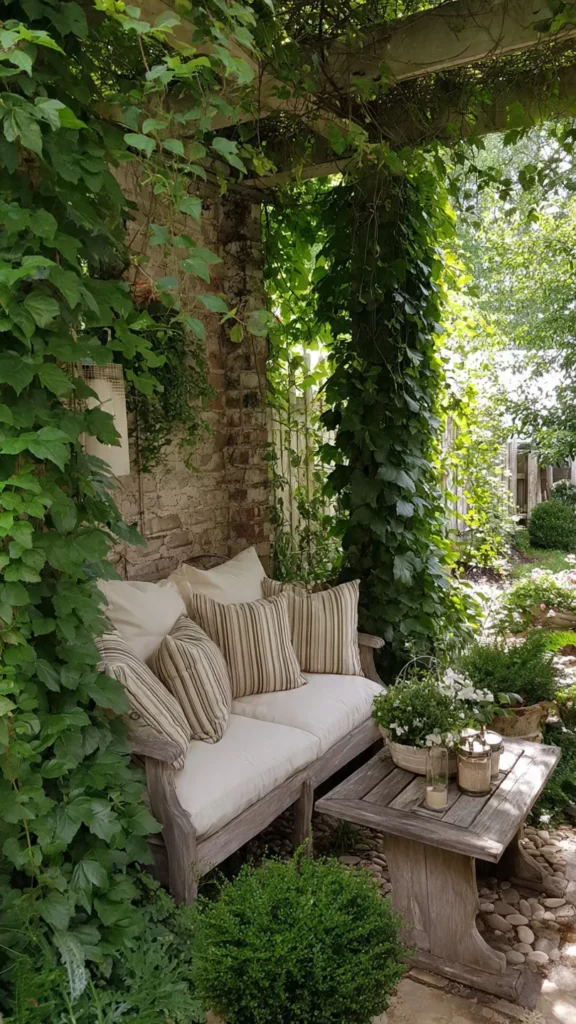 Vines on trellises, pergolas, or fences create living walls of softness. They add height and romance without taking up much room. I love the storybook feel of climbing greenery. Doesn’t it feel instantly enchanting?