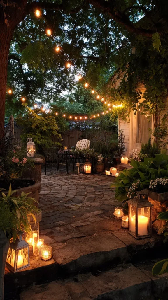 String lights, lanterns, or soft solar path lights turn the backyard into a dreamy evening escape. The glow softens everything beautifully. I always think nighttime gardens hold a special kind of magic. Doesn’t gentle light feel healing?