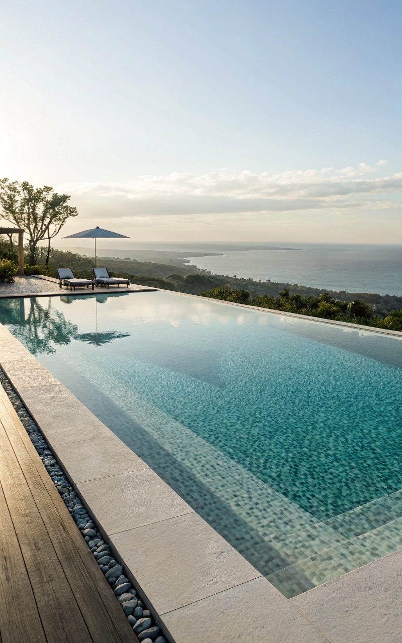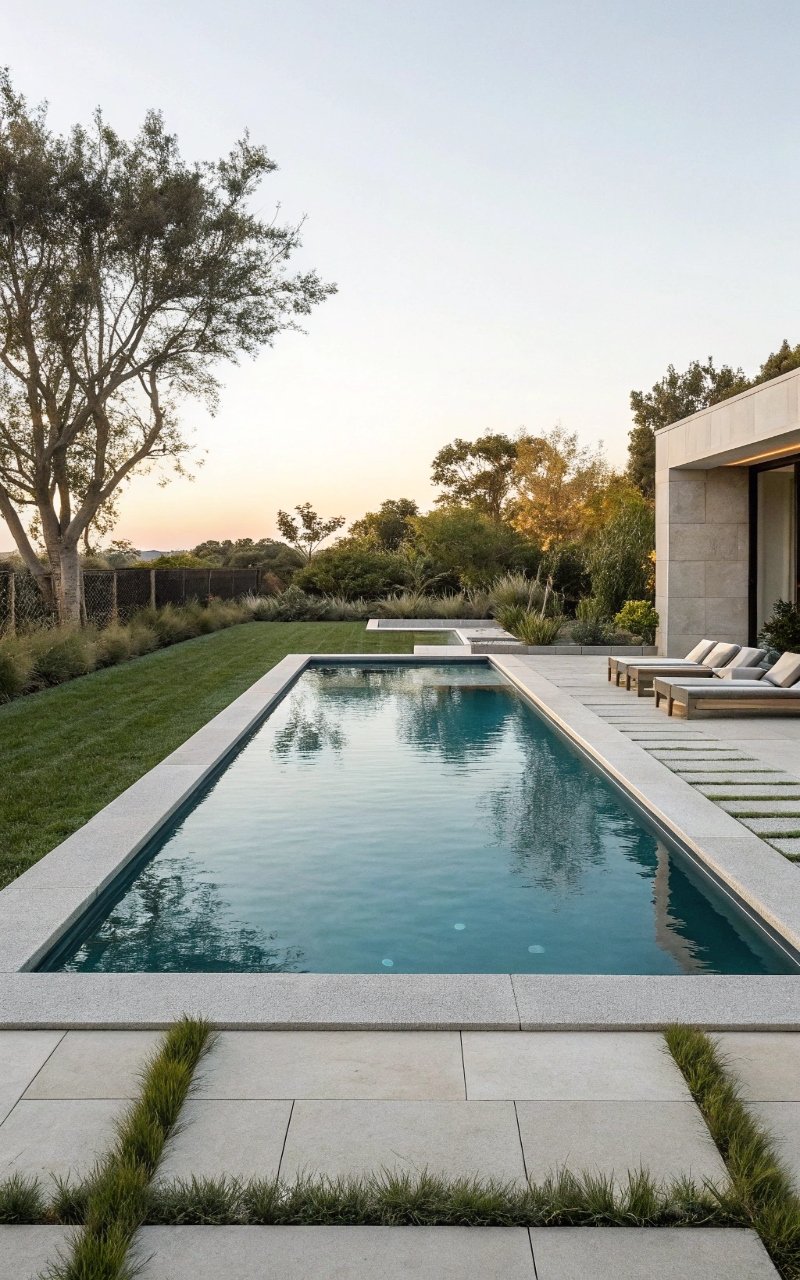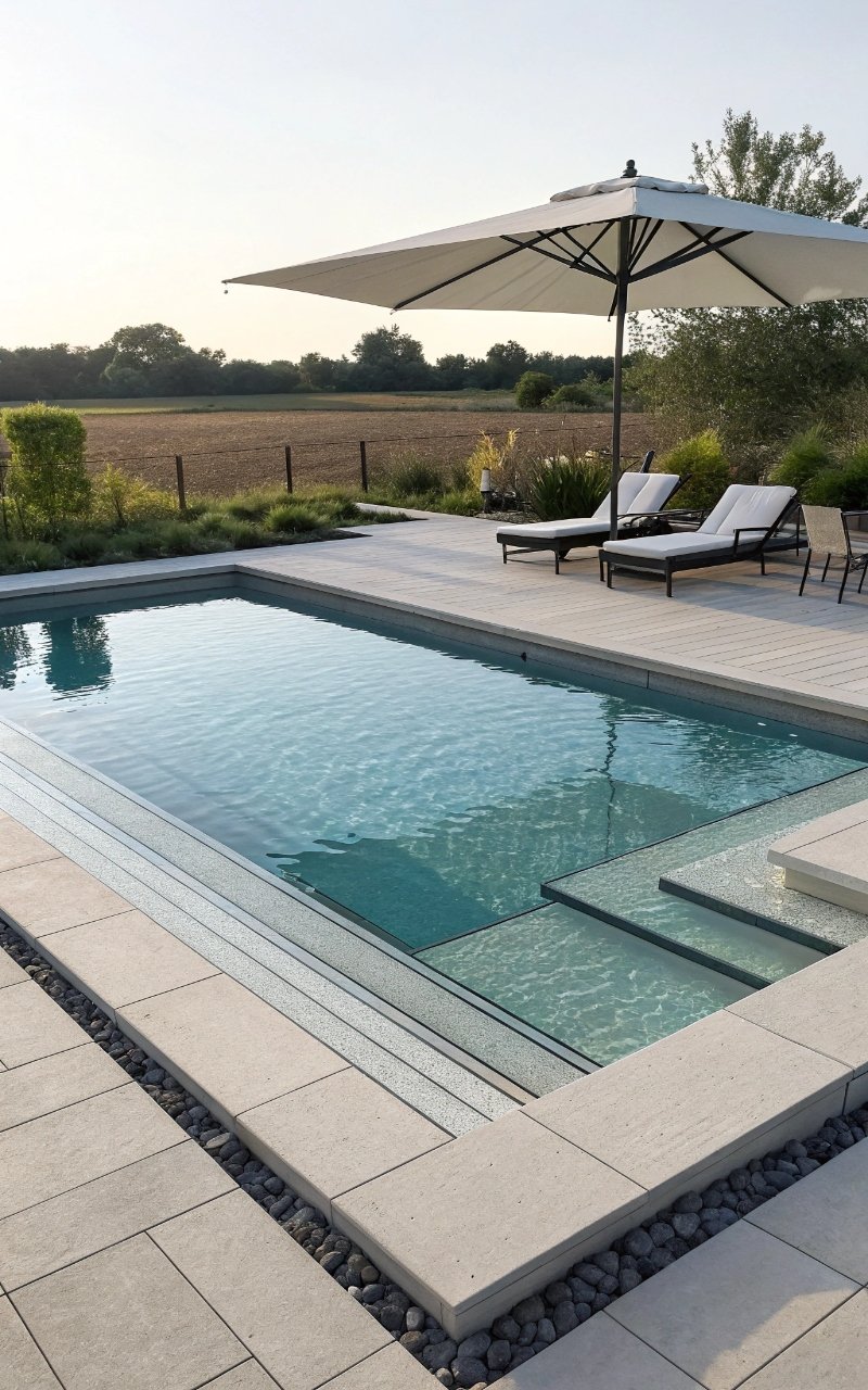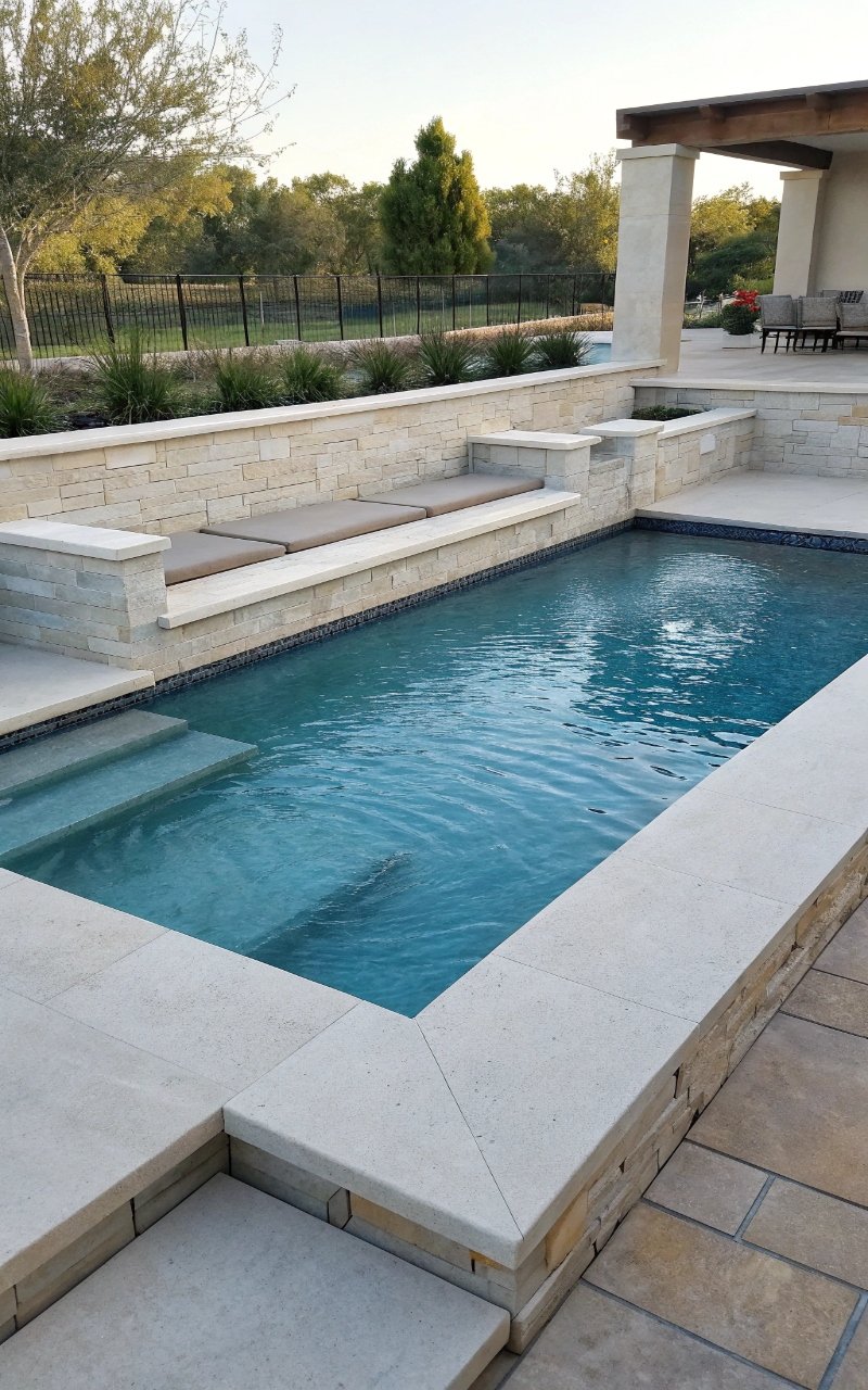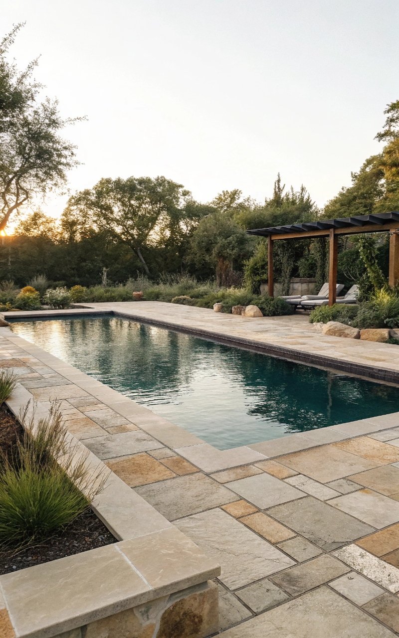 I used natural stone around the pool, and it instantly softened the overall look while making everything feel more grounded. The texture adds warmth and character. It blends beautifully with landscaping. The pool feels more organic. It’s simple, but timeless. Pro Tip: Choose slip-resistant stone for safety.