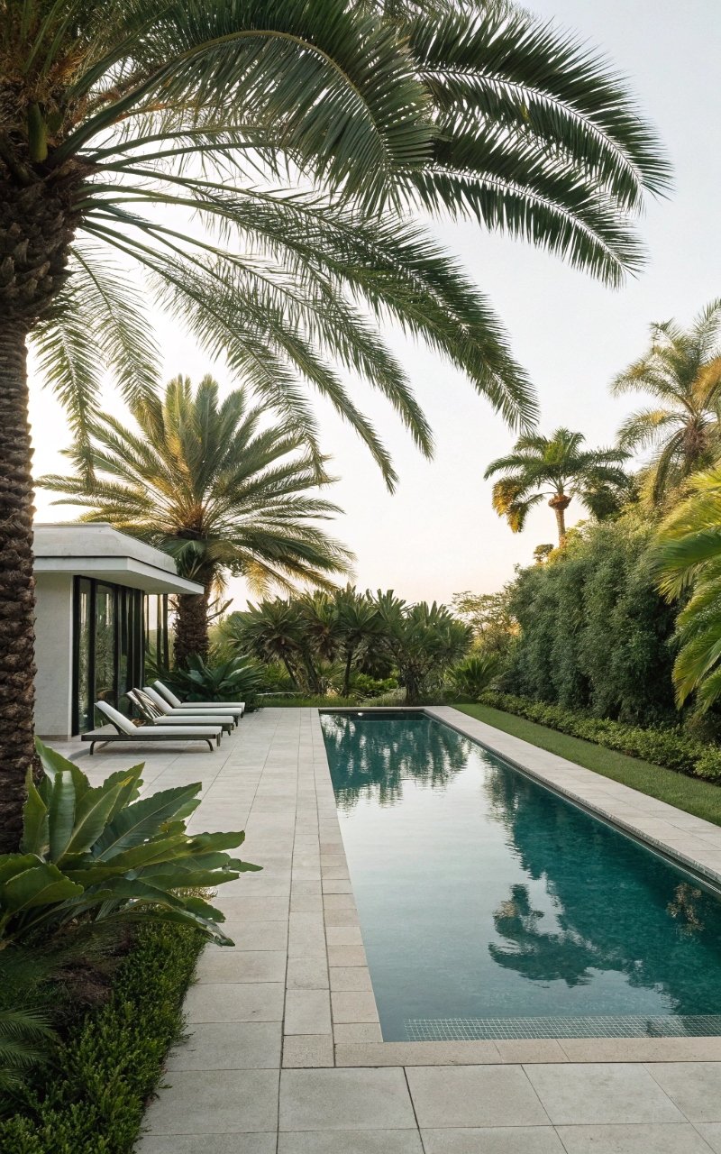 Framing the pool with layered tropical plants made the whole area feel softer and more immersive. The greenery adds privacy and movement. It instantly shifts the mood. The setup feels lush and resort-like. It’s simple, but transformative. Pro Tip: Mix heights for a fuller look.