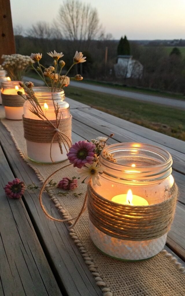 Mason jars can easily become charming lanterns. I love decorating them with twine, flowers, or pastel paint. The glow looks beautiful in the evening. Nothing feels overly complicated. Doesn’t candlelight feel cozy? It’s simple but magical.