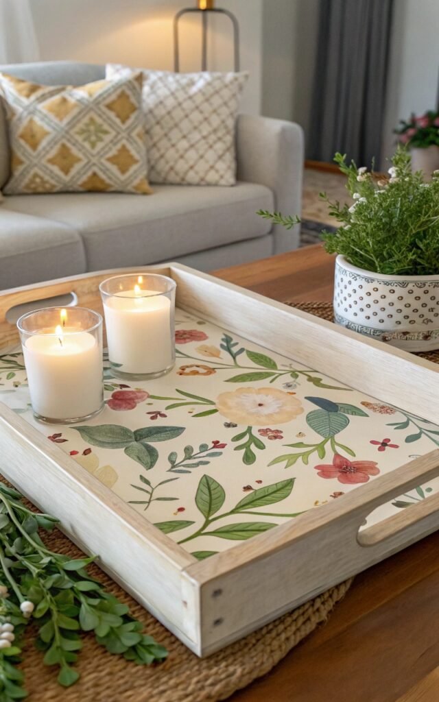 Decorating a tray with floral designs creates useful decor. I love painting subtle patterns or decoupage flowers. The tray becomes both functional and stylish. Nothing feels boring. Doesn’t small decor create big impact? It’s a fun project.