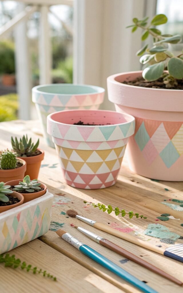 Painting terracotta pots instantly refreshes them. I love using soft pastel shades or simple geometric patterns. The pots suddenly look more decorative. Nothing feels ordinary anymore. Doesn’t color make plants stand out? It’s a relaxing craft.
