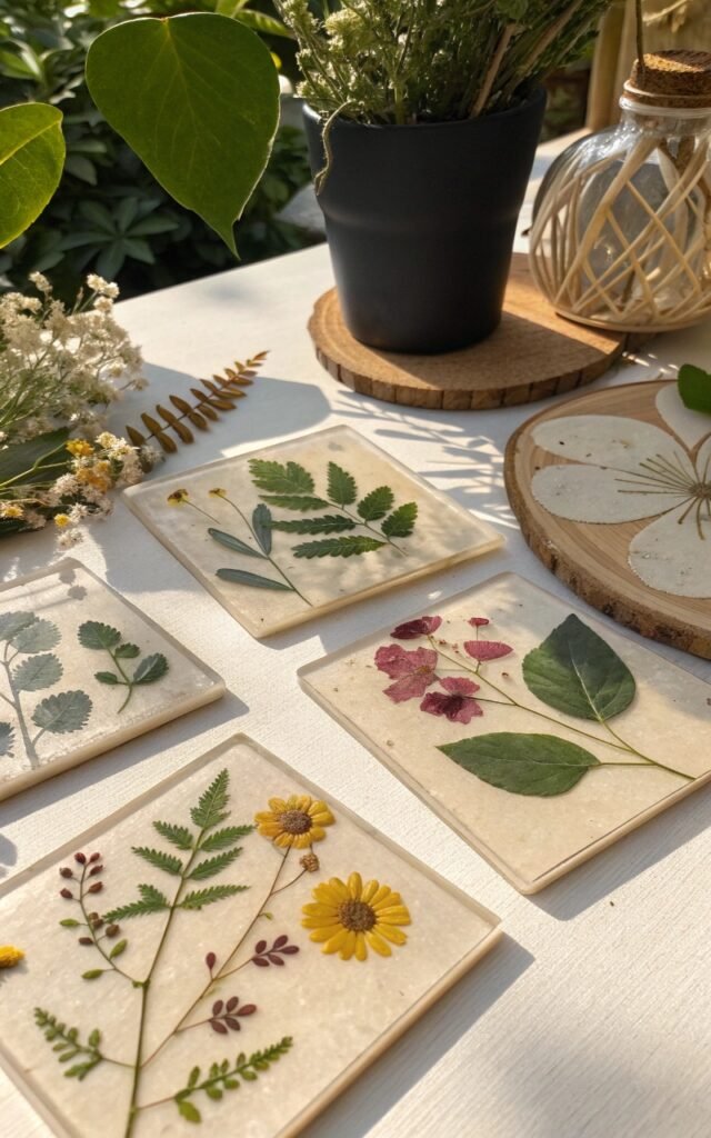 Botanical coasters are both practical and beautiful. I love embedding leaves or pressed flowers into resin or decoupage designs. The coasters feel delicate and unique. Nothing feels generic. Doesn’t handmade tableware feel special? It’s a creative craft.