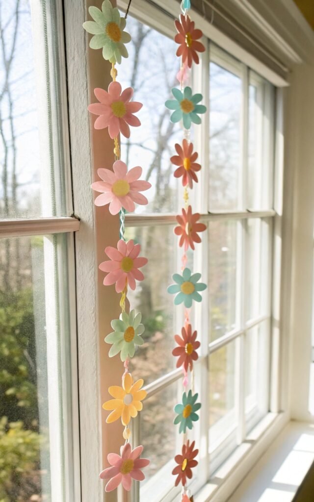 Paper flower garlands add playful color to a room. I love hanging them across windows or mantels. The decor feels festive and cheerful. Nothing looks dull. Doesn’t handmade garland feel charming? It’s fun to make.