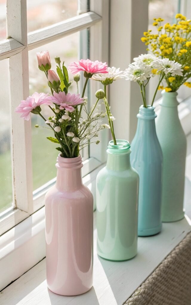 Old glass bottles become beautiful vases with paint. I love soft pastel finishes or textured designs. The bottles look charming with fresh flowers. Nothing feels disposable. Doesn’t upcycling feel satisfying? It’s eco-friendly crafting.