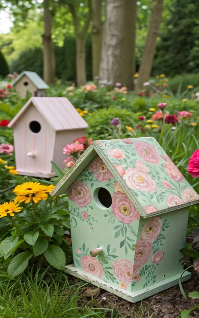 Birdhouses painted in spring colors brighten any garden. I love adding floral patterns or pastel paint. The outdoor space suddenly feels playful. Nothing looks plain. Doesn’t handmade garden decor add charm? It’s a rewarding craft.