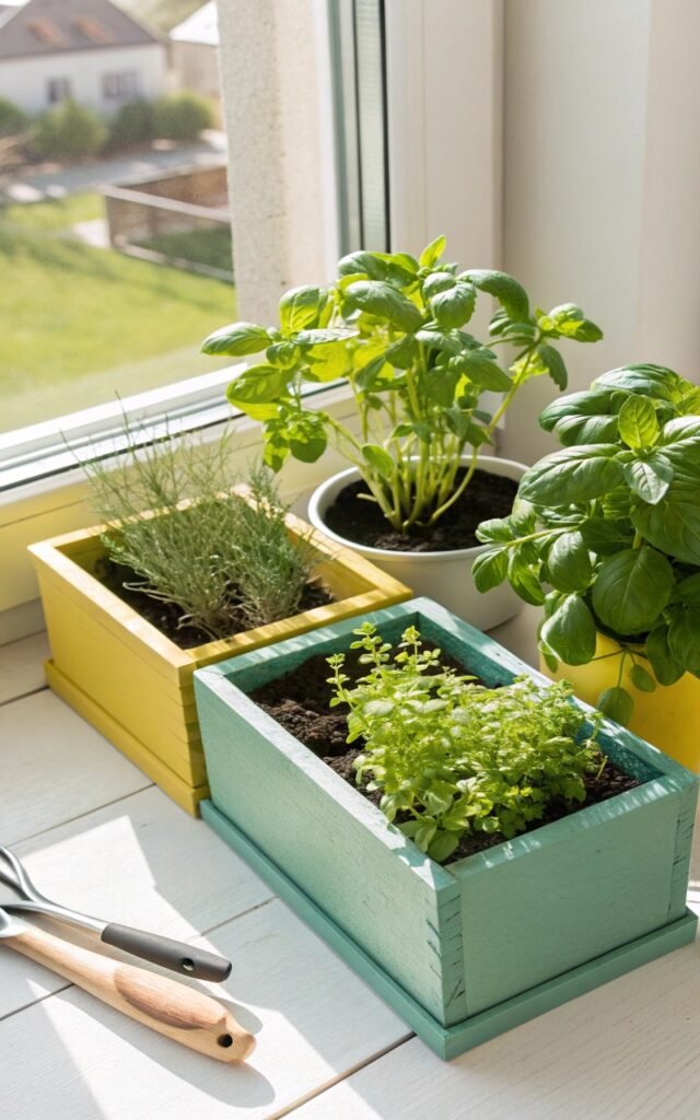 Decorated herb planters combine creativity and function. I love painting small boxes for basil, mint, or thyme. The plants look beautiful growing inside. Nothing feels wasted. Doesn’t fresh greenery make kitchens happier? It’s both decorative and useful.