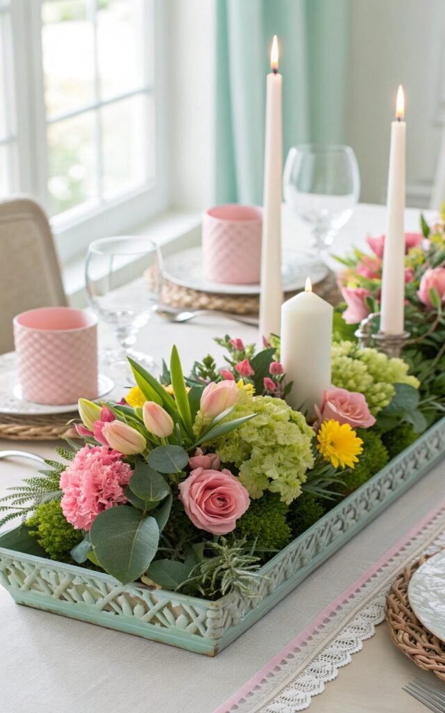 A handmade centerpiece brings the season indoors. I love arranging candles, flowers, and greenery on a tray. The table instantly feels fresh and welcoming. Nothing looks unfinished. Doesn’t a centerpiece tie everything together? It’s perfect for spring gatherings.