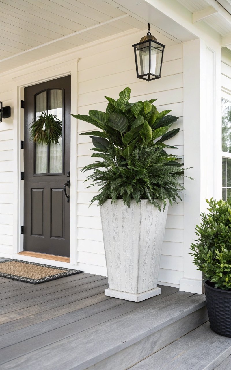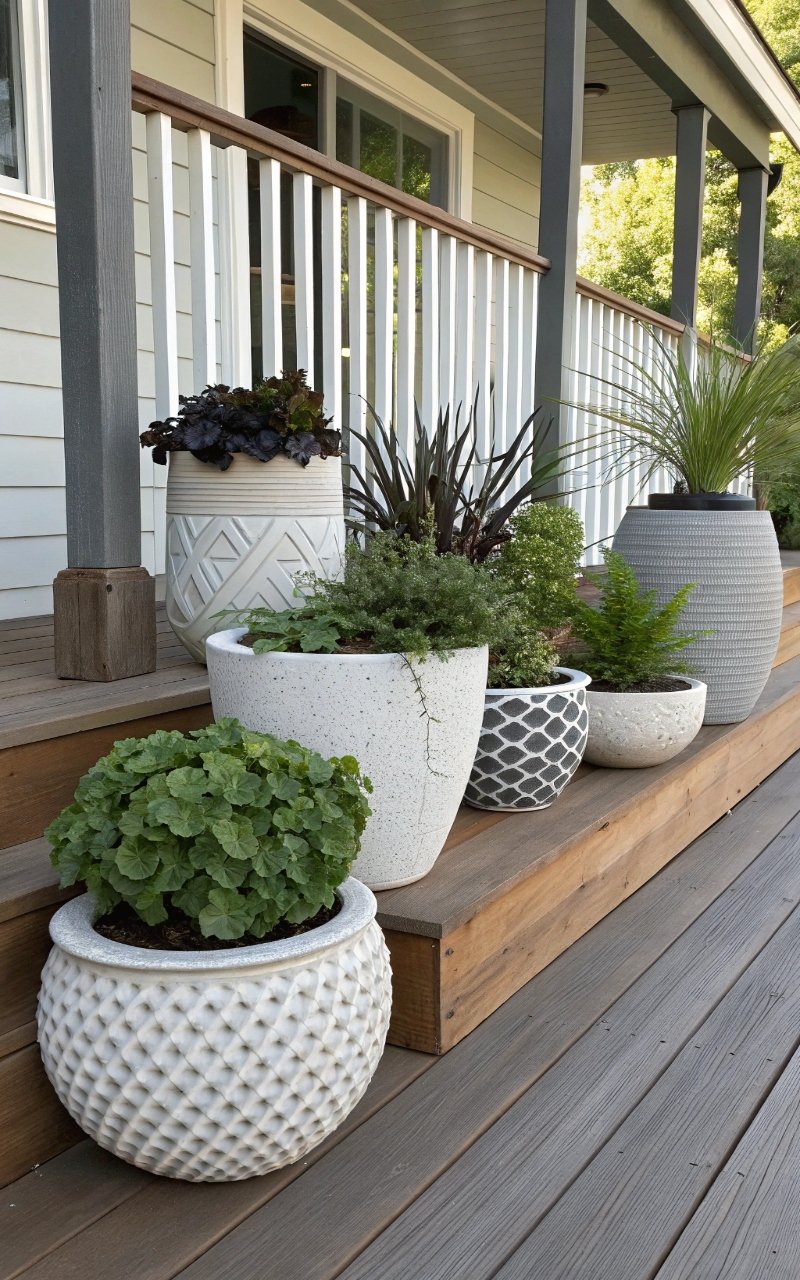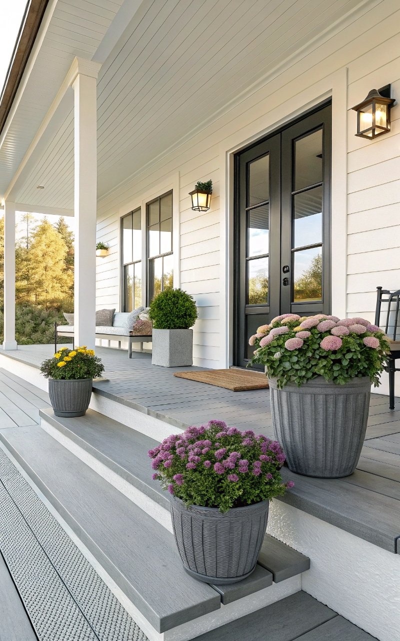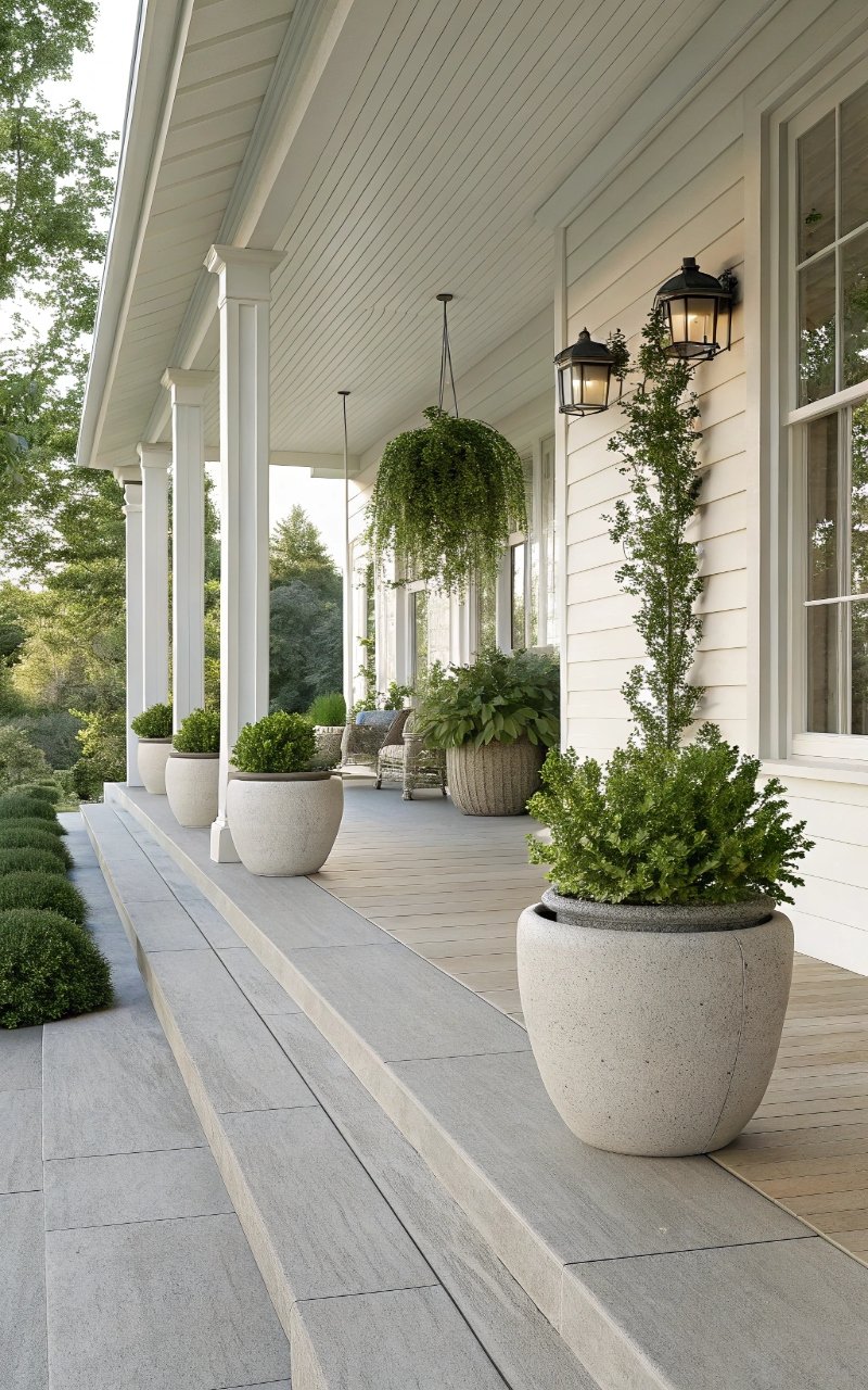 Keeping pots neutral created a calm, modern look. The soft tones and simple design make the porch feel clean and uncluttered. I love how it highlights the plants themselves. It feels effortless and stylish. Doesn’t simplicity feel refreshing? This one proves it.