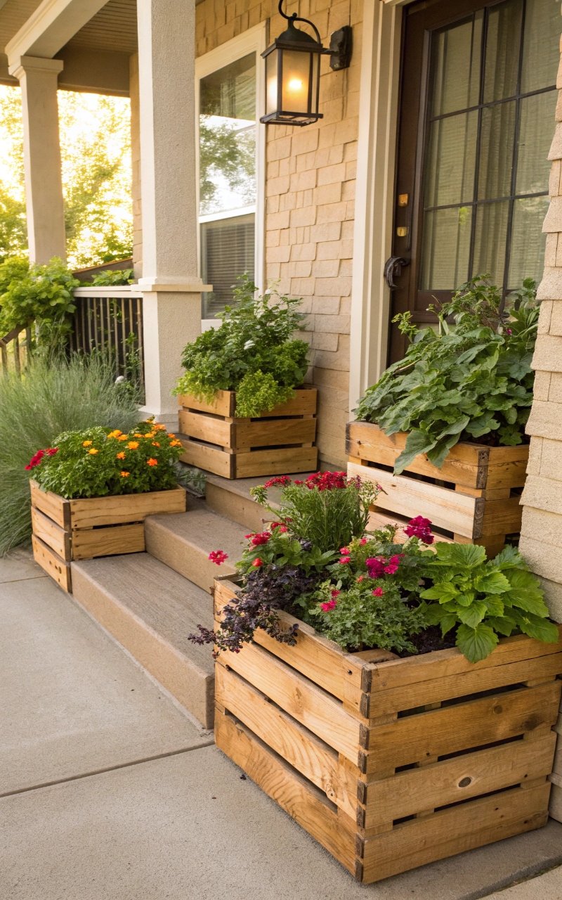 Using wooden crates as planters added a cozy, rustic vibe. The natural texture and layered setup create warmth and character. I love how it feels relaxed and creative. It’s budget-friendly too. Have you ever repurposed items like this? This one works beautifully.