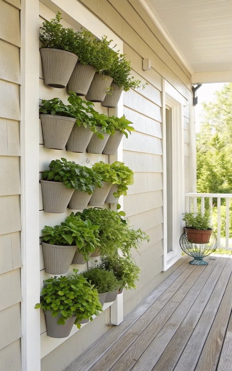 Mounting pots on a wall turned my porch into a vertical garden. The layered greenery and space-saving design make it feel lush without clutter. I love how it uses height creatively. It feels modern and fresh. Have you ever gone vertical like this? This one works beautifully.