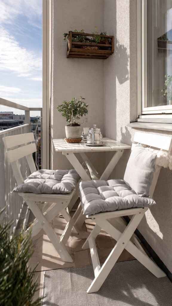 Foldable chairs save space and add function. I love how they can be pulled out only when needed. Add a cushion and they’re kid-approved. The balcony stays open. Doesn’t flexibility make life easier? This one’s practical and easy.