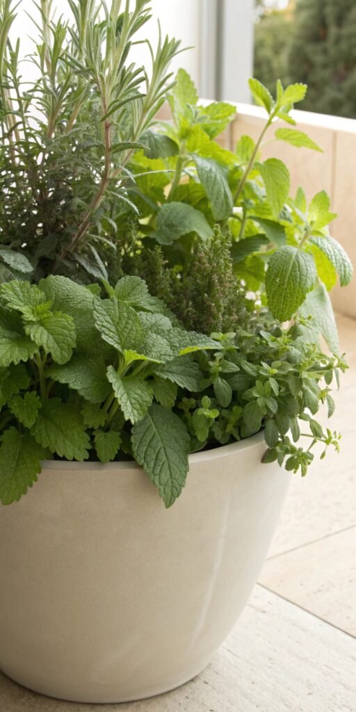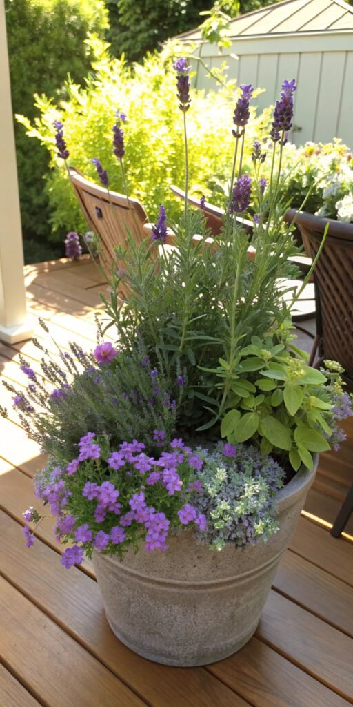 Mixing flowers and herbs adds beauty and function. I love pairing lavender with small blooms for texture. The container feels lively and fragrant. Nothing feels one-dimensional. Doesn’t variety make it interesting? It’s both decorative and useful.