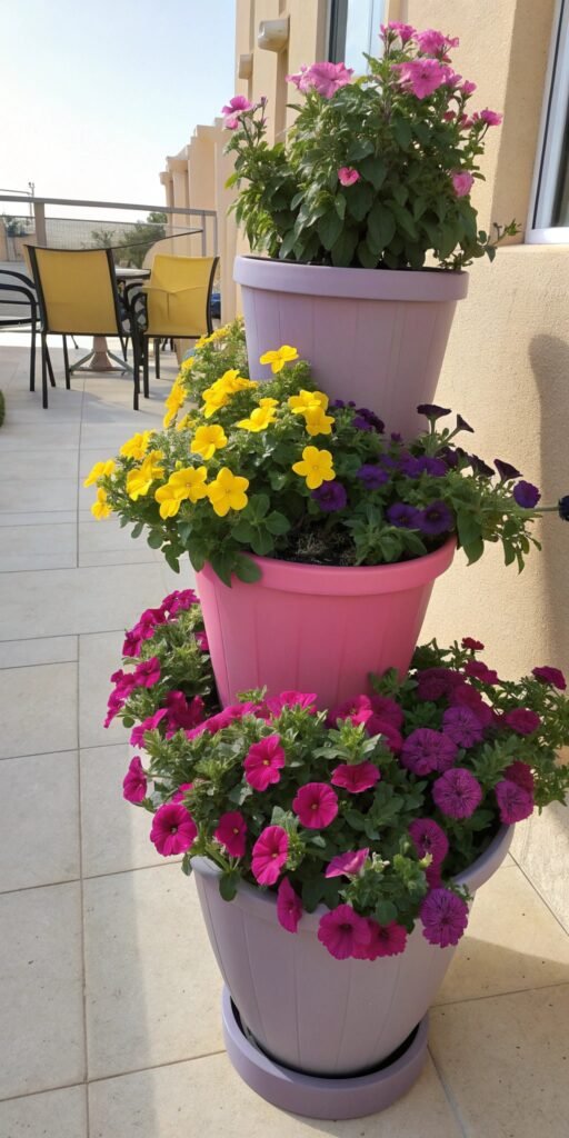 Hanging baskets maximize small spaces. I love trailing plants that cascade beautifully. The display feels soft and dynamic. Nothing feels cramped. Doesn’t vertical gardening feel smart? It’s perfect for balconies or patios.