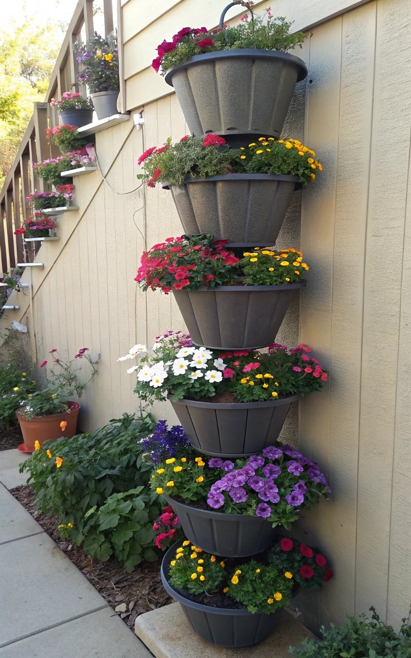 When I ran out of ground space, going vertical felt like a total hack. The stacked pots or hanging arrangements add height and dimension without taking up much room. It makes the garden feel fuller and more layered. I love how it draws your eyes upward, creating visual interest. Have you ever thought about using your vertical space more? It’s a simple upgrade with big impact.