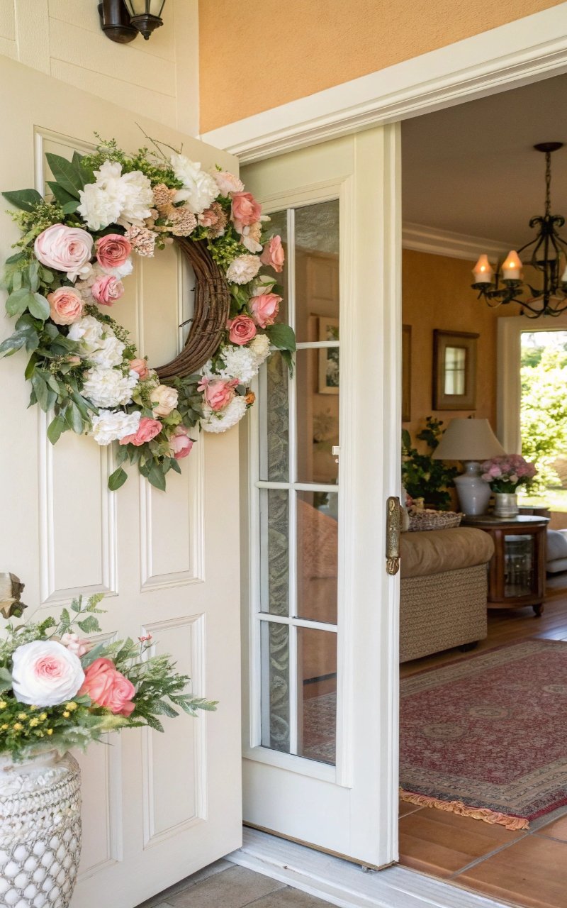 I hung a floral wreath near the entrance, and it created a soft, welcoming detail that feels both decorative and inviting. The circular shape adds balance. The flowers bring color and texture. It sets the tone right away. It’s a classic touch that works. Pro Tip: Choose lightweight materials for easy hanging.