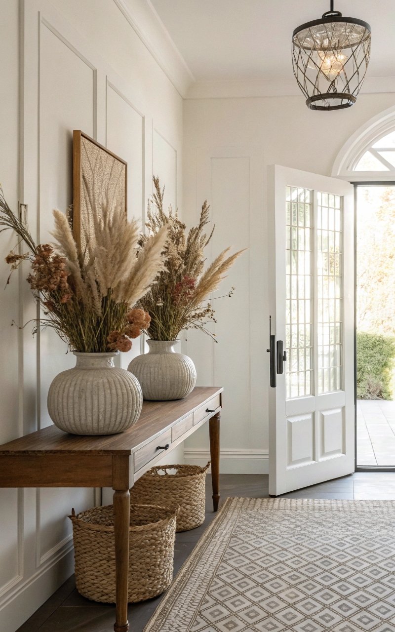 As I kept experimenting with floral decor, I noticed how versatile it can be, whether you lean toward fresh blooms, dried arrangements, or subtle botanical accents. Flowers bring in color, texture, and a natural sense of movement that instantly lifts a space. It’s not about filling every corner, but about placing a few thoughtful elements that create a cohesive look. Some ideas feel bold and expressive, others soft and minimal, but they all add that sense of warmth you want right at your entrance. And yeah, once you start layering floral touches, it’s hard to stop.