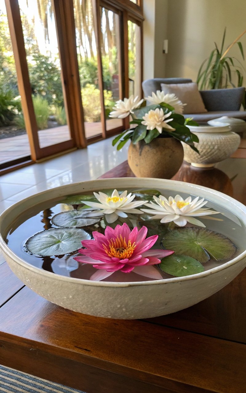 Placing floating flowers in a shallow bowl added a unique and calming detail that feels a bit unexpected. The water reflects light beautifully. It creates a peaceful atmosphere. The setup feels fresh and different. It’s simple, but eye-catching. Pro Tip: Use wide bowls for better display.