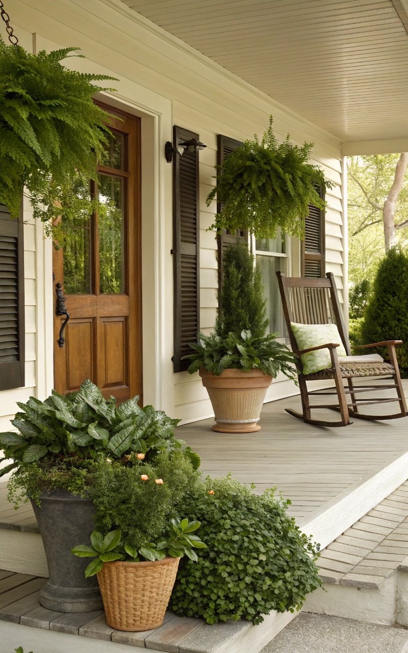 Adding plants around the porch made the entry feel more welcoming. The layered greenery and balanced placement create a cozy, lived-in look. I love how it connects the yard to the home. It feels intentional and inviting. Doesn’t a welcoming entry make a difference? This one definitely does.